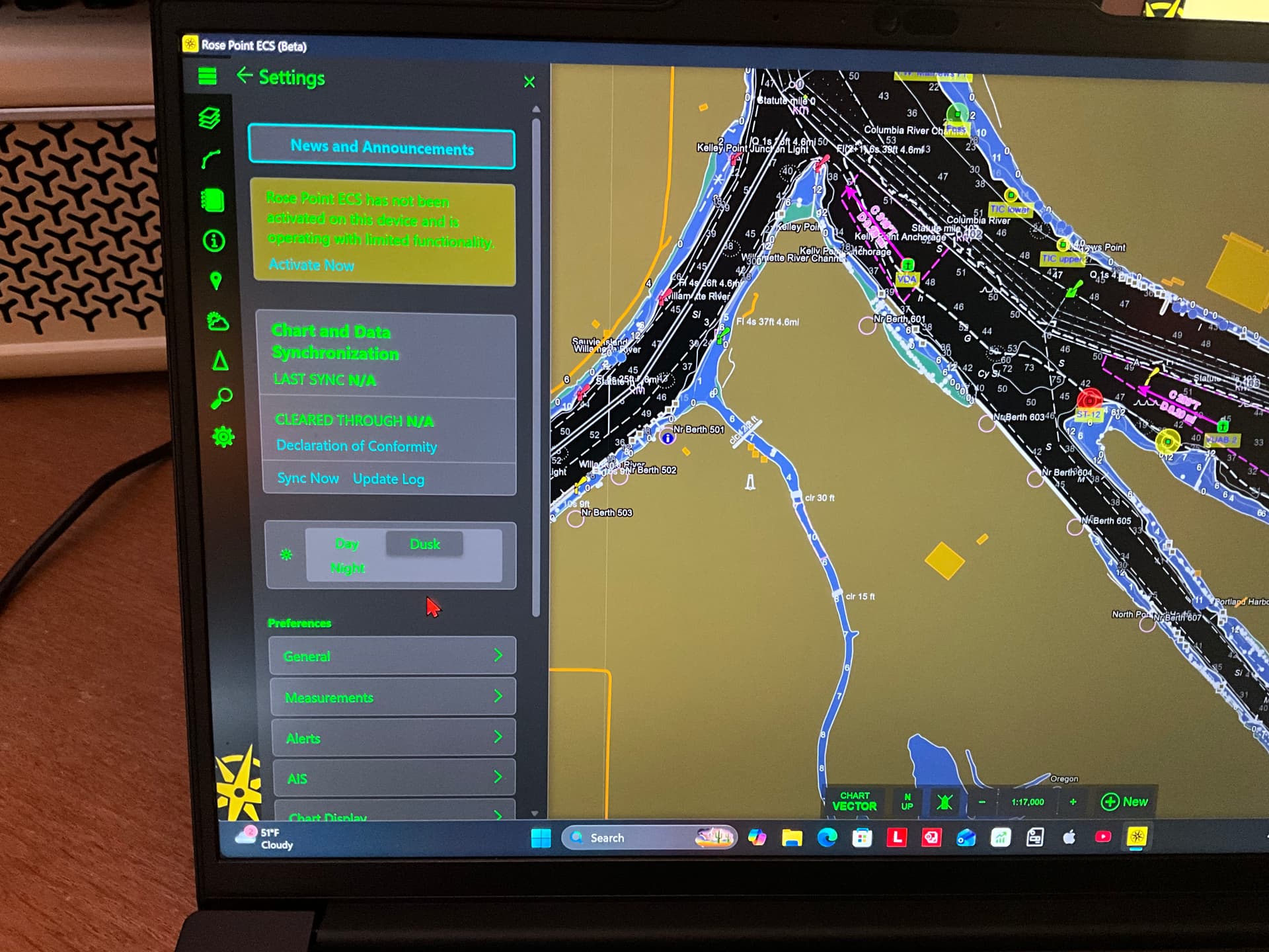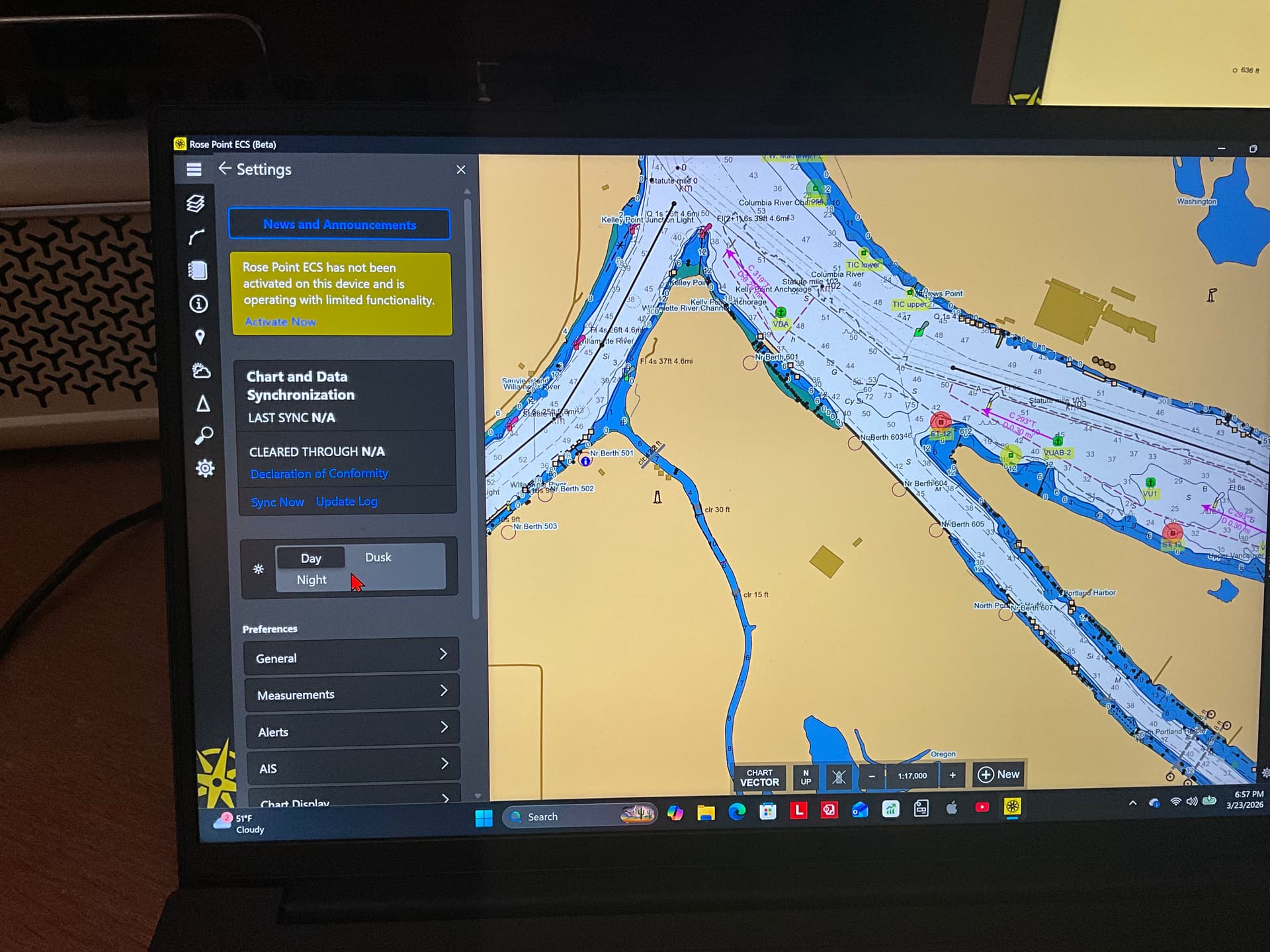 I can see the black water back & see the work you were talking about with routes and colors. I tell all my ship mates that the black daylight color automatically changes to white in dusk and night mode with regards to what color you paint chart information like routes, heading, ROT, barges,etc.