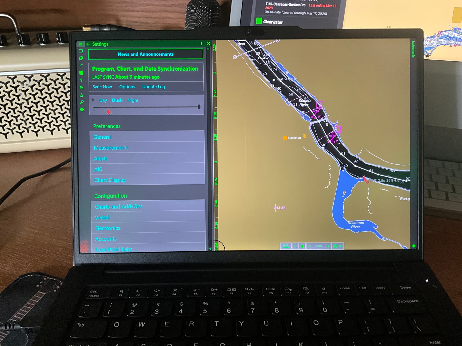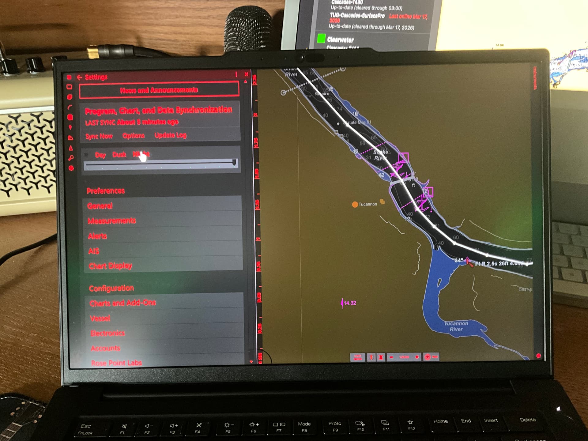 The update we just released includes changes to dusk and night mode colors, including the “deeper water is blacker” feature. We still have some work to do adjusting colors of objects drawn on top of the charts, but the charts themselves now use the same colors as v4.0.